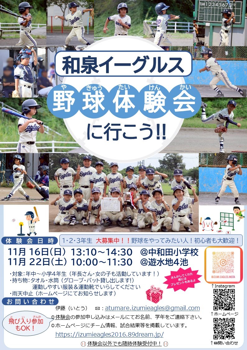 和泉イーグルスでは、元気いっぱいの体験会を開催します!